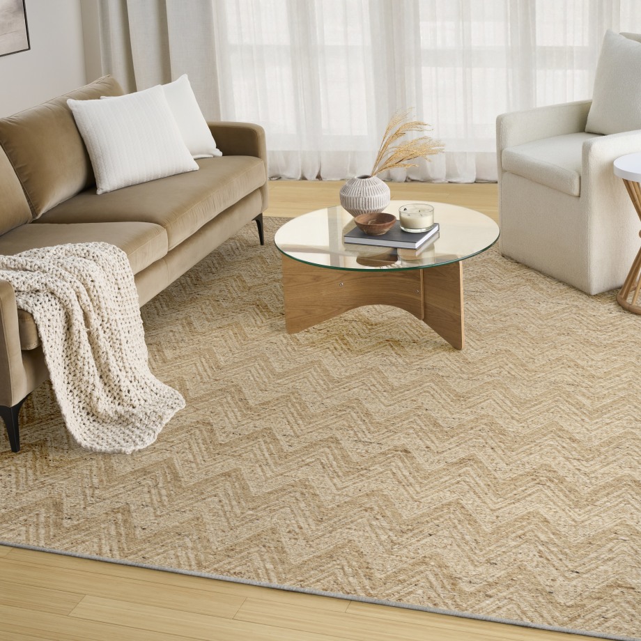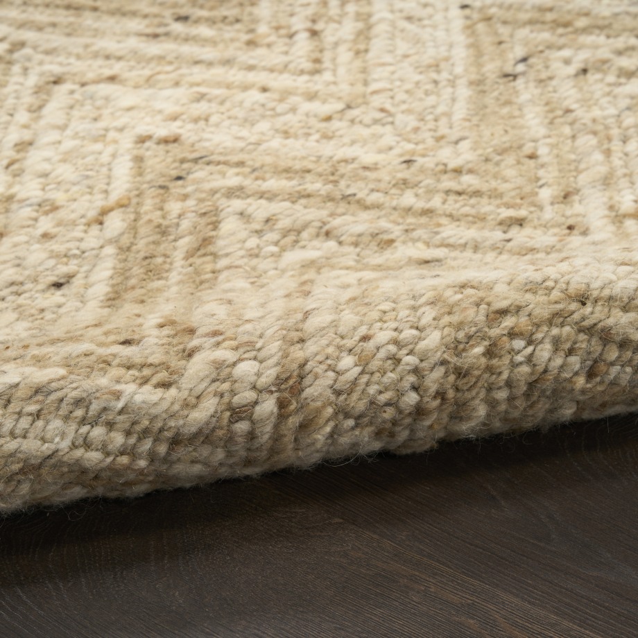 In soft beige with ivory undertones, this geometric rug sets the tone for cozy, grounded interiors. The handwoven chevron pattern adds subtle texture, while subtle tonal shifts add depth to the design.